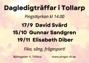 Välkommen till dagledigträffar i Pingstkyrkan i Tollarp i höst.